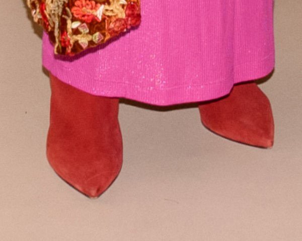 Returning to her Feb. 18 look, Christian Louboutin boots in a fun violet hue accented King’s vividly colored outfit. The shoes featured an almond toe and a stiletto heel in addition to a tall slouchy shaft. The signature color of the label, an unmistakable shade of red splashed across the sole of each shoe, could be glimpsed on the inner side of the stiletto heel in photographs, a welcome accent fitting in with her eye-catching aesthetic. This isn’t the first time King has worn purple suede shoes — she donned a pair of pumps in a purple hue when she attended MoMa’s 2024 Black Arts Council Benefit in April.