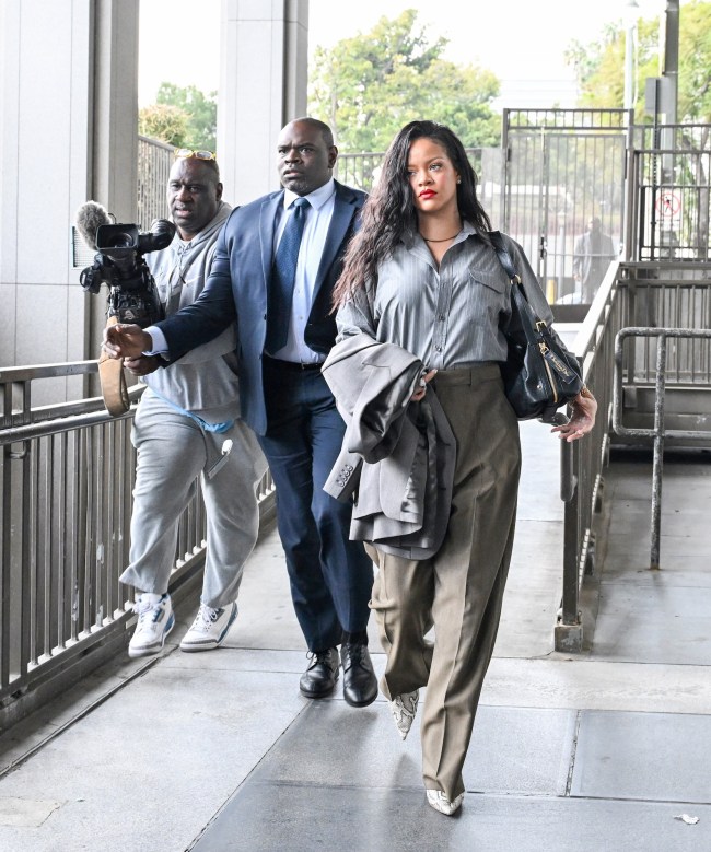 The Barbara boot has evidently been a staple for Rihanna in recent days. The day that Rocky was acquitted, the “Stay” singer wore the reptilian-inspired boots with creased green trousers and a gray pinstriped button-down which was tucked into her pants.